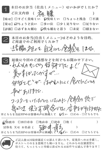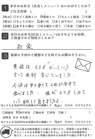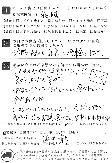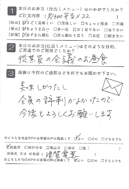 お弁当も皆さんに喜ばれました。また利用させていただきたいと思います。