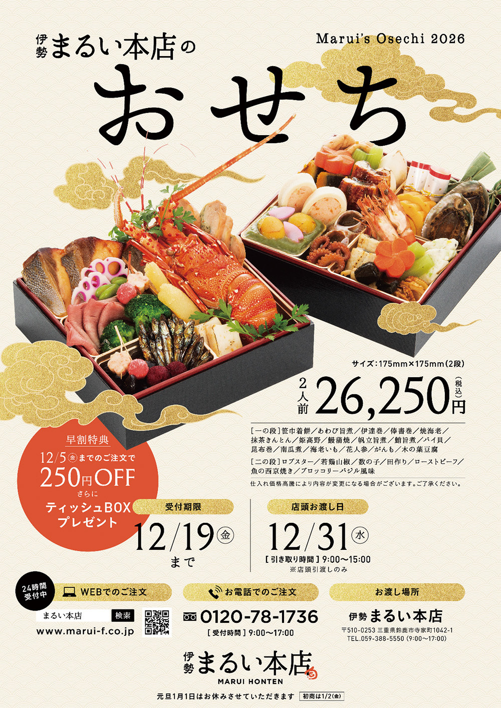 おせちは店舗引取り限定です。